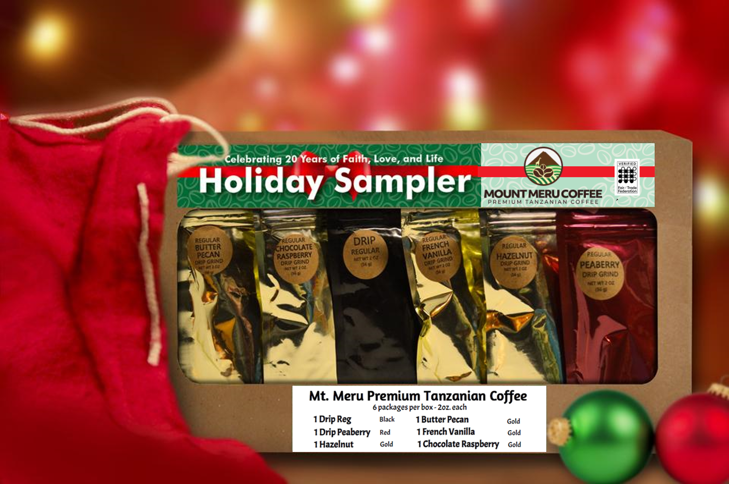 6 Sample Packages (2 oz. each): Peaberry * Hazelnut * Chocolate Raspberry * Butter Pecan * French Vanilla * Regular