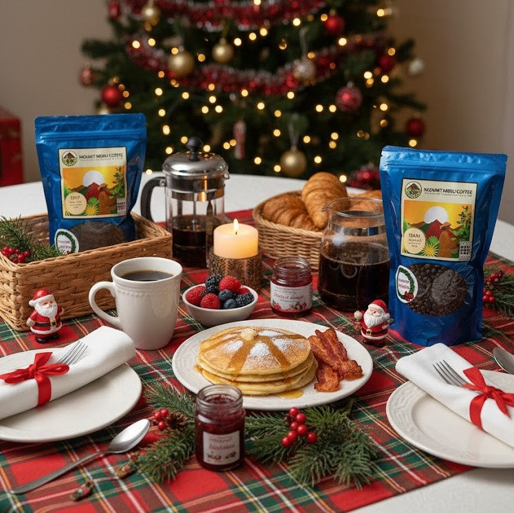Our Christmas Traditions Coffee Blend combines 100% Mt. Meru premium Arabica coffee beans, enhanced with the rich flavors of cinnamon, nutmeg, and vanilla, with a hint of chocolate and other selected spices. Christmas Traditions is the perfect seasonal coffee for drinking with friends and family, and when it’s brewing, you can’t help but think of Christmas. Why not make Christmas Traditions part of your Christmas tradition!